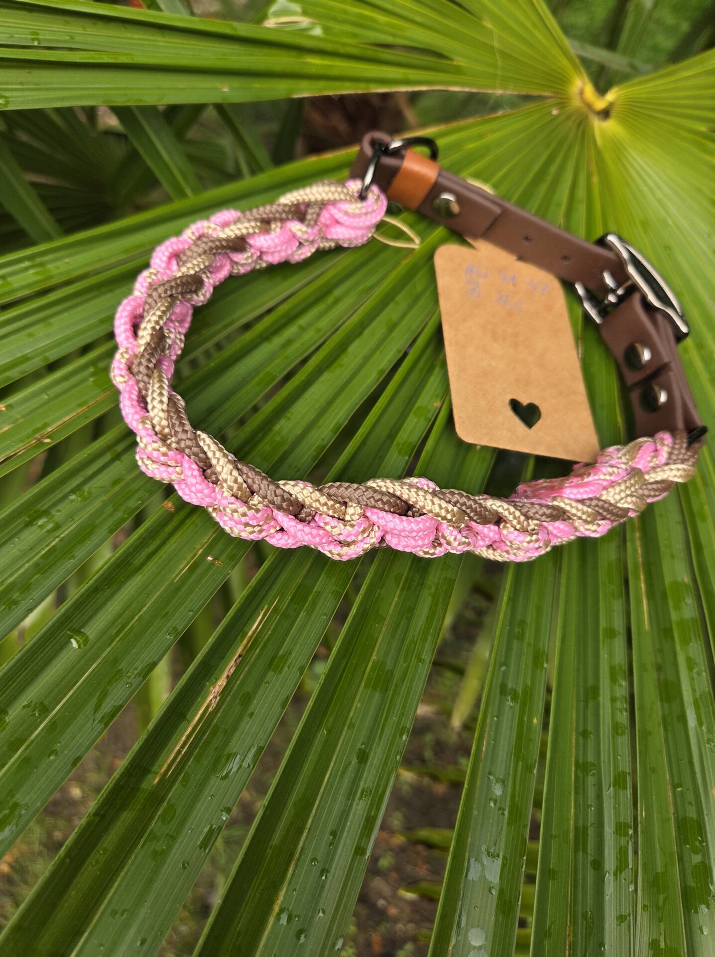 geflochtenes PPM Herzchen-Halsband mit 19 mm BioThane Verschluss in dunkelbraun