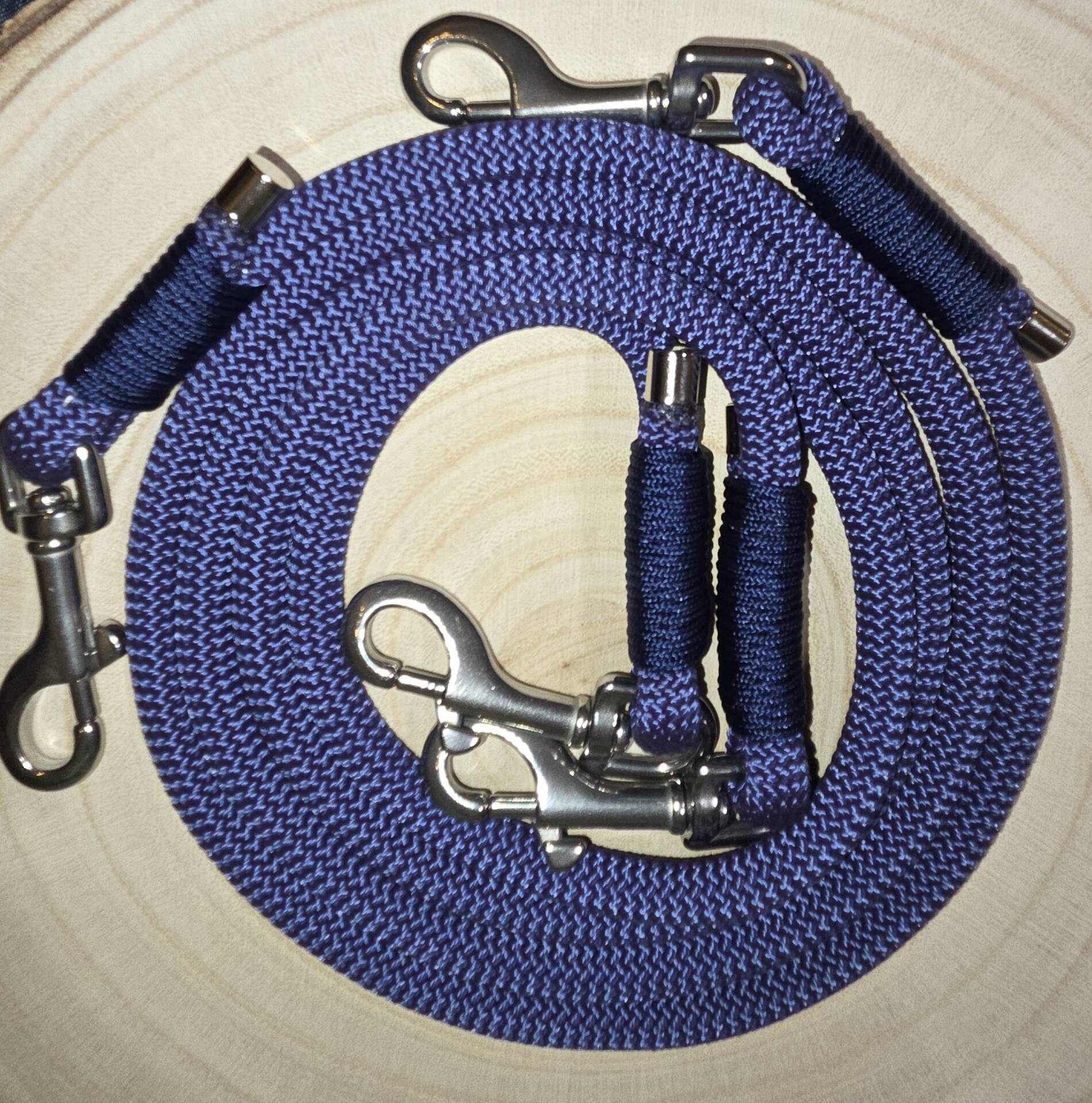 Die Koppelleine ist in verschiedenen Längen erhältlich, auch in verschiedenen Materialien und Farben. Wie immer könnt ihr euch das selbst zusammenstellen, wir fertigen es für euch an.