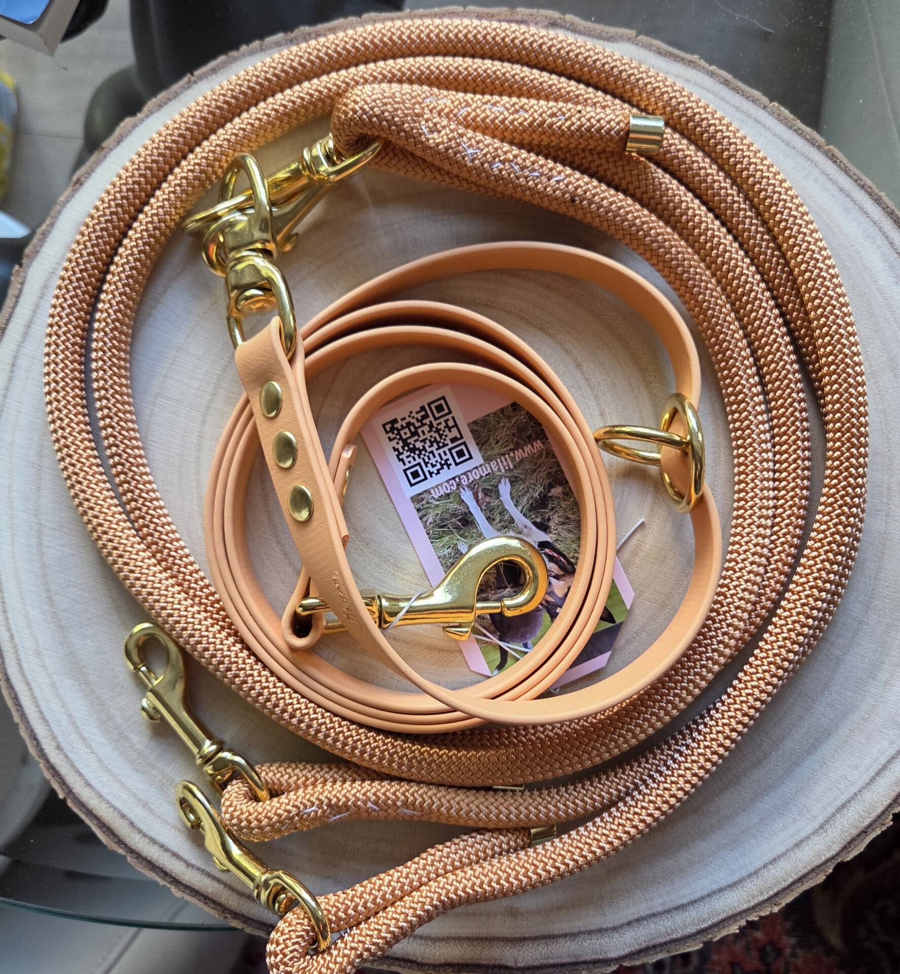 Ihr könnt auch das Material selbst aussuchen. Wie bei den „normalen“ Leinen auch . Mix und Match machts: Möglich ist BioThane, Paracord geflochen, PPM geflochten, oder Tau.