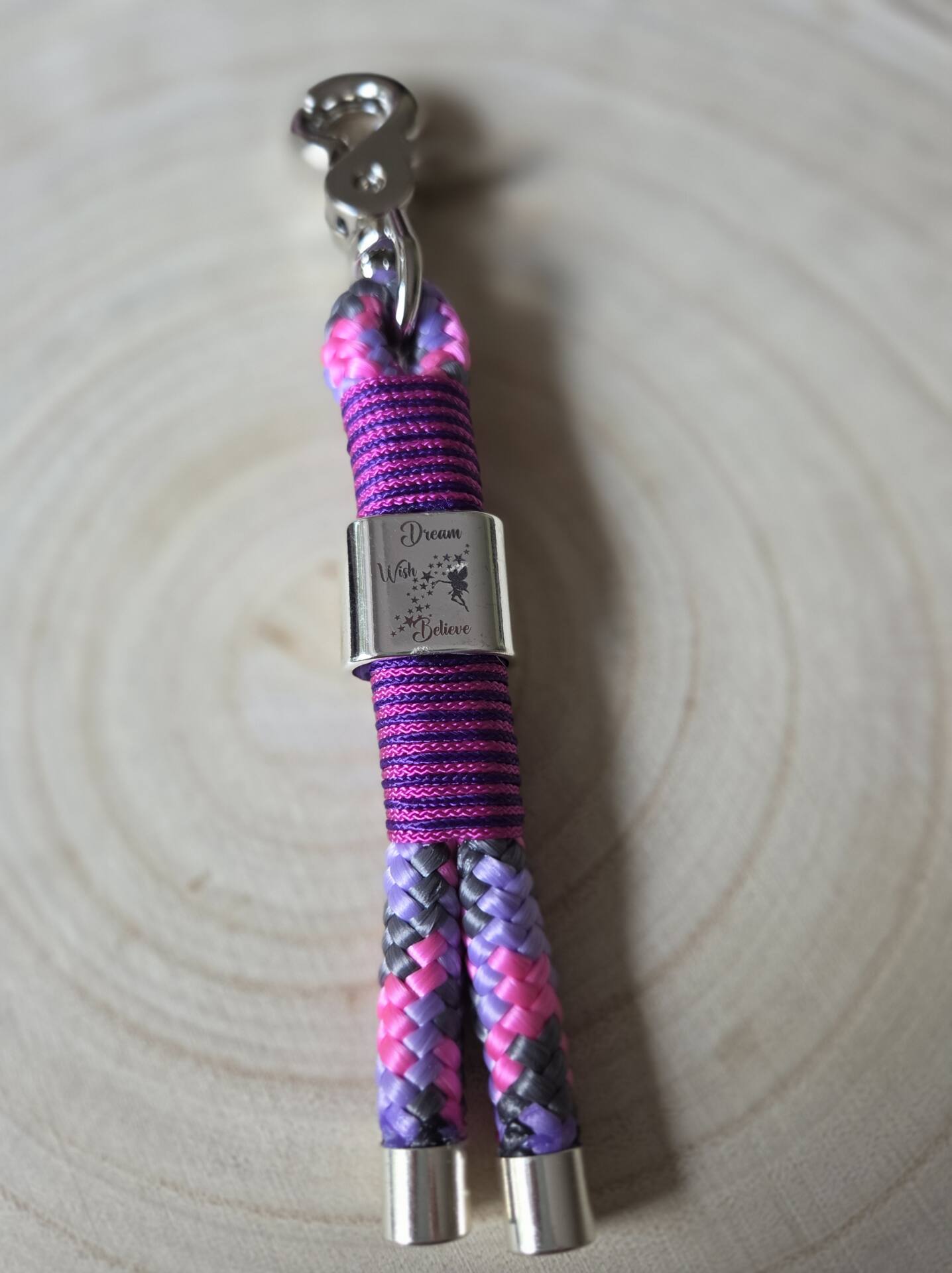 Schlüsselanhänger aus 10 mm PPM-Seil ind flieder/pink/dunkelgrau